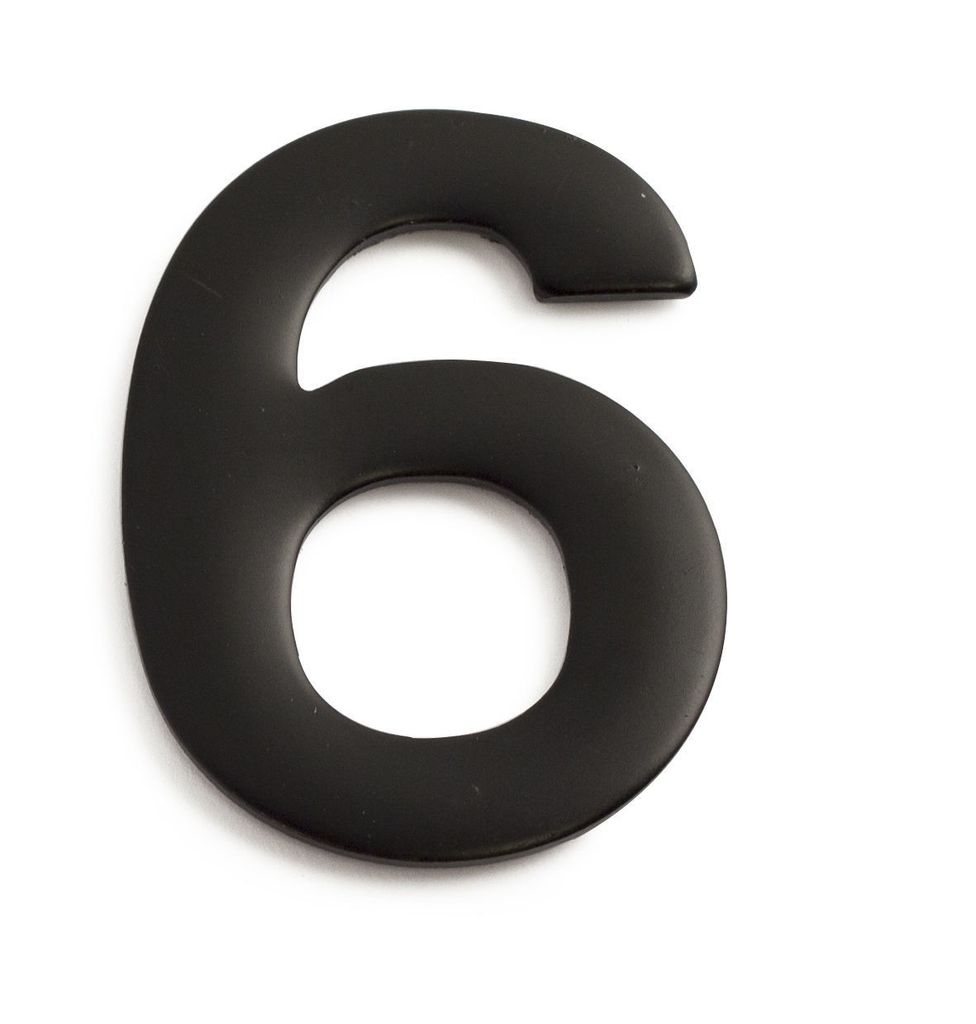 Siffra 6 av rostfritt stål. För markering av husnummer, brevlådor osv.