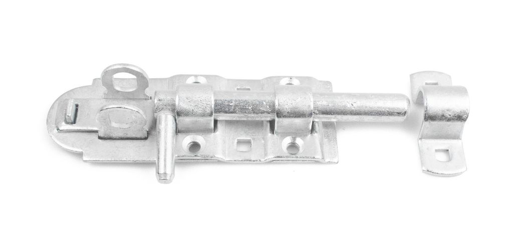 Skjutregel av varmgalvaniserat stål. Kan låsas med hänglås med max 6 mm bygel.