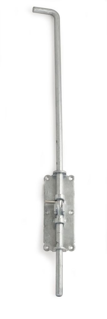 Skjutregel av varmgalvaniserat stål. Justerbar slaglängd 5-305 mm. För hänglås med bygel max 10 mm.