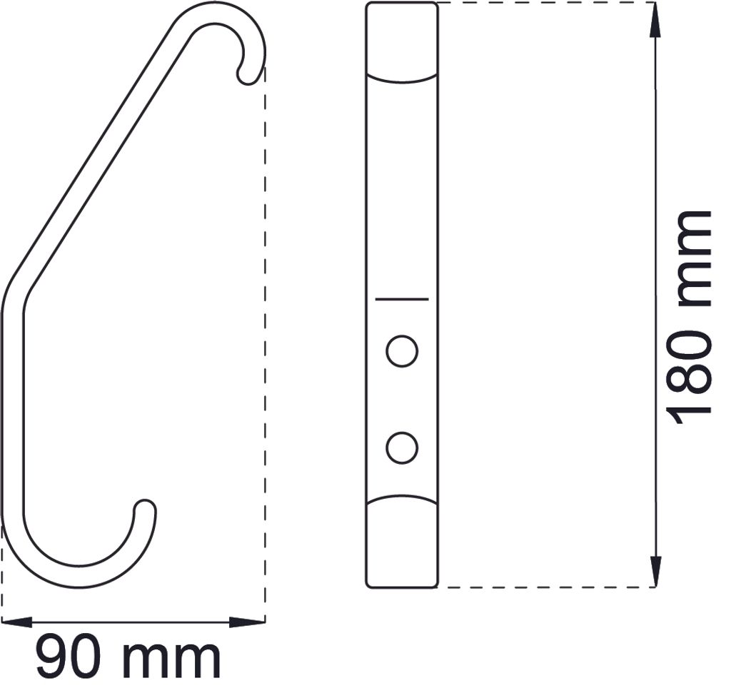 Den dubbla konstruktionen gör att du enkelt kan hänga både jacka och väska samtidigt, vilket är särskilt praktiskt i miljöer som skolor, fritidshem och offentliga omklädningsrum. Med ett utsprång på hela 90 mm ger kroken gott om plats och gör det enkelt att organisera ytterplagg och tillbehör.