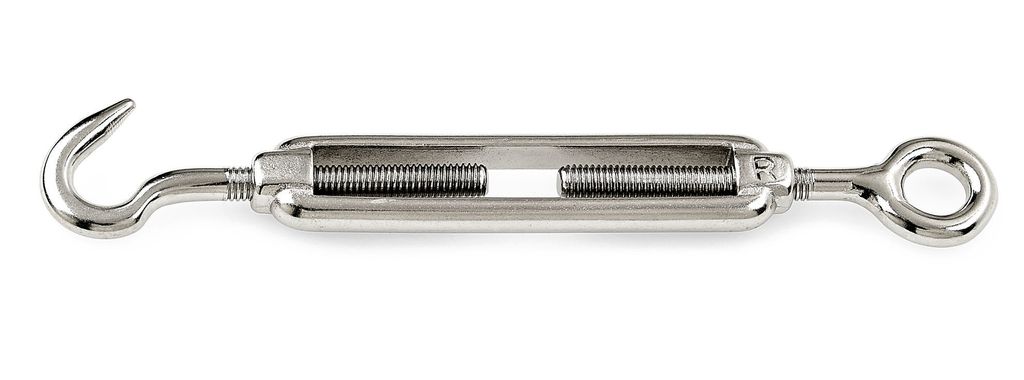 Spännkrok med skruvögla och krok av syrafast A4-stål 316.