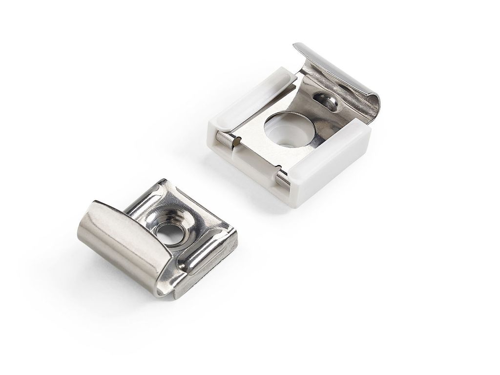 Spegelklammer i sats om 2 fasta och 2 fjädrande klammer. Rekommenderad maxvikt per sats är 15 kg.