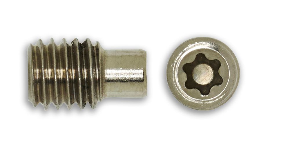 Stoppskruv av rostfritt stål. Levereras parvis.