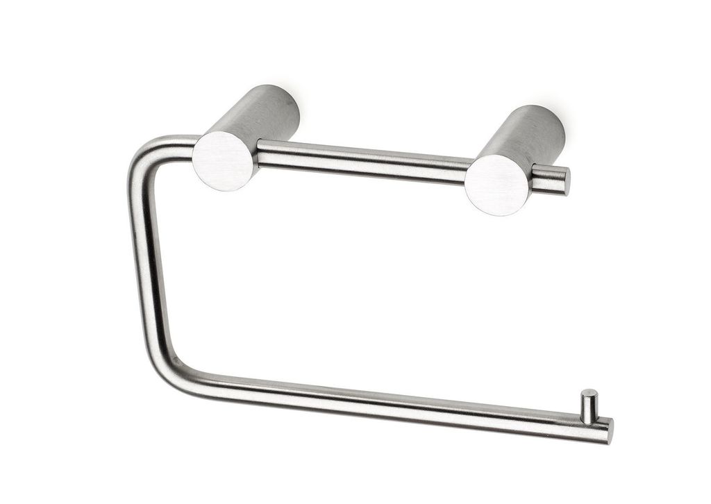 Enkel och elegant toalettpappershållare av rostfritt stål med dold fastsättning.