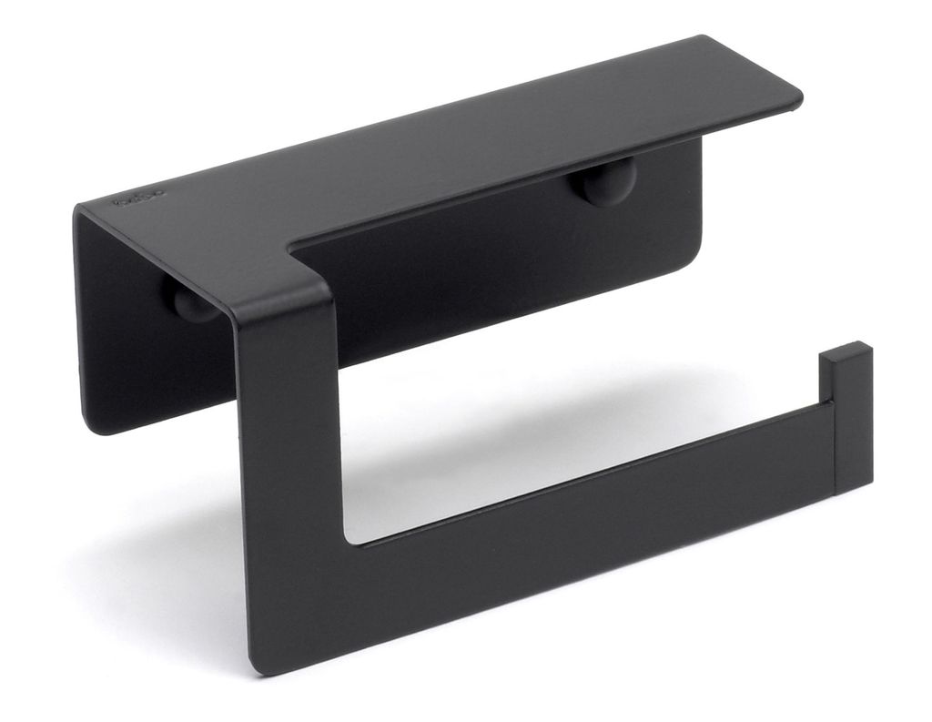 Toalettpappershållare av svartlackerat stål. Dold fastsättning.