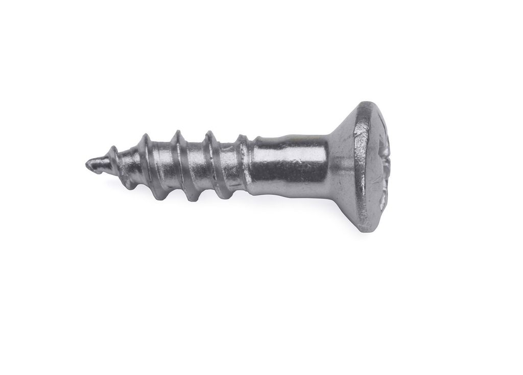 Träskruv 4x16 mm med kullerförsänkt skalle för rosett och nyckelskylt. I förpackning med 8 st.