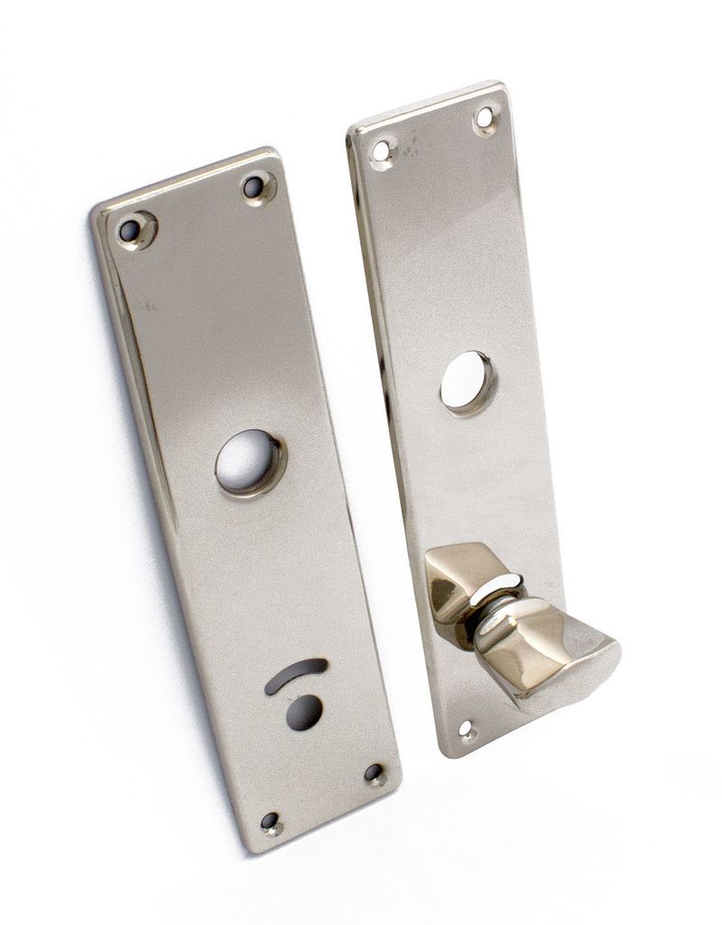 WC-långskylt av pressad mässingsplåt. Passar till dörrtjocklek 38-42 mm.