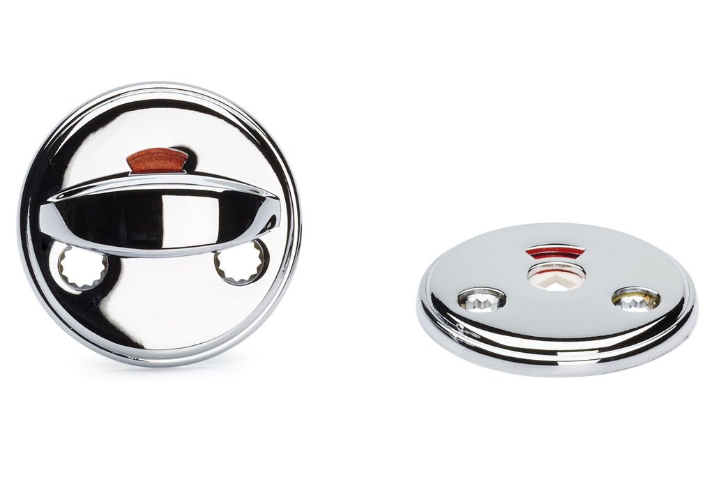 WC-beslag av zink/zamak, i samma design som dörrhandtag Alicante. Passar till dörrtjocklek 38-42 mm.