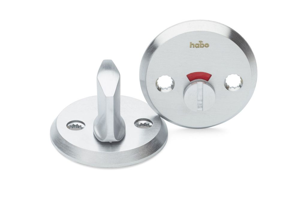WC-beslag av mässing. Avsedd för Habo modullås 6565. Passar till dörrtjocklek 38-65 mm.