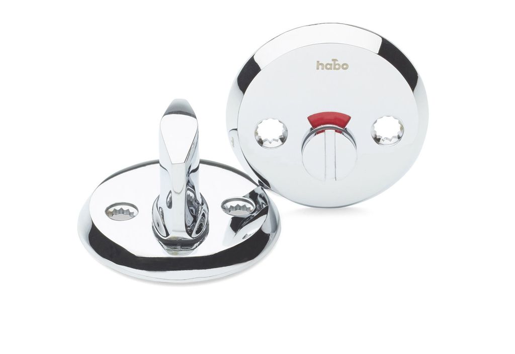 WC-beslag av mässing. Avsedd för Habo modullås 6565. Passar till dörrtjocklek 38-65 mm.