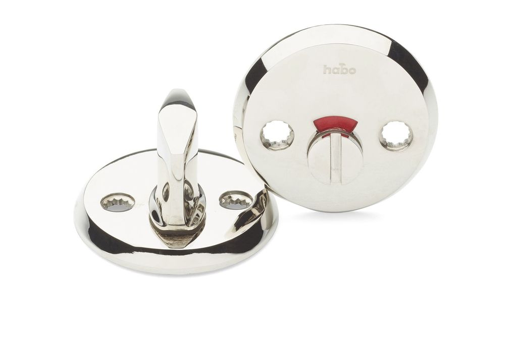 WC-beslag av mässing. Avsedd för Habo modullås 6565. Passar till dörrtjocklek 38-65 mm.