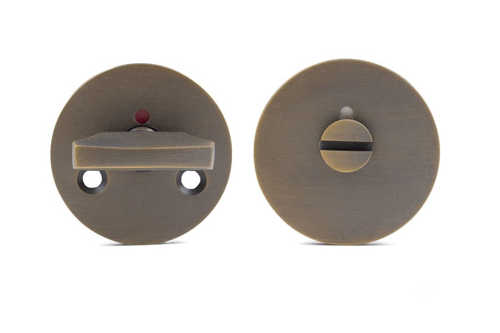 WC-beslag av mässing. Exklusiv och modern design med slimmad look. Passar till dörrtjocklek 38-42 mm.