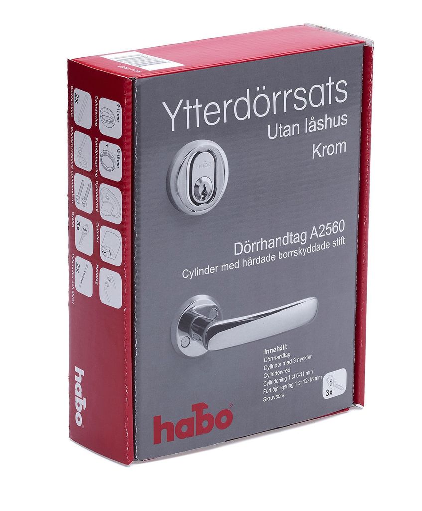 Habo Ytterdörrsats Utan Låshus Krom