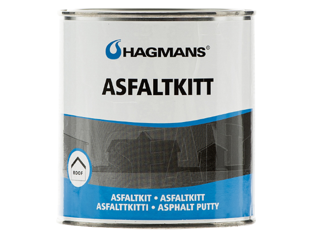 Hagmans asfaltskitt som är baserat på mjuk specialasfalt, fiber- och fillermaterial. Användes på papp, plåt, betong och trä. Fäster även på fuktiga ytor.