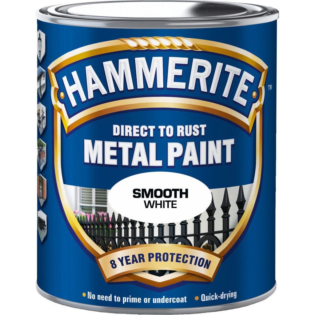 Med Hammerite kan man måla direkt på rost. Det bästa skyddet får man då man använder Hammerite på ny metall. Det blir en emaljliknande yta med inbyggt rostskydd som håller i många år.