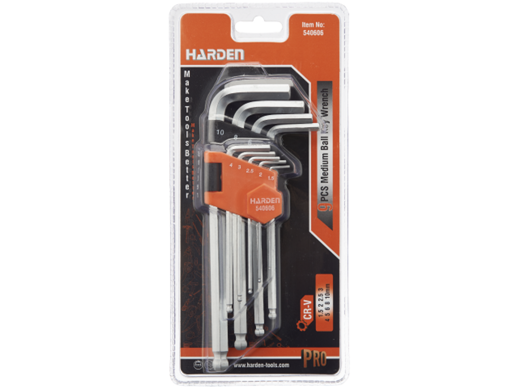 Harden Sexkantnyckelsats av CRV. Smidig vikbar hållare i plast.