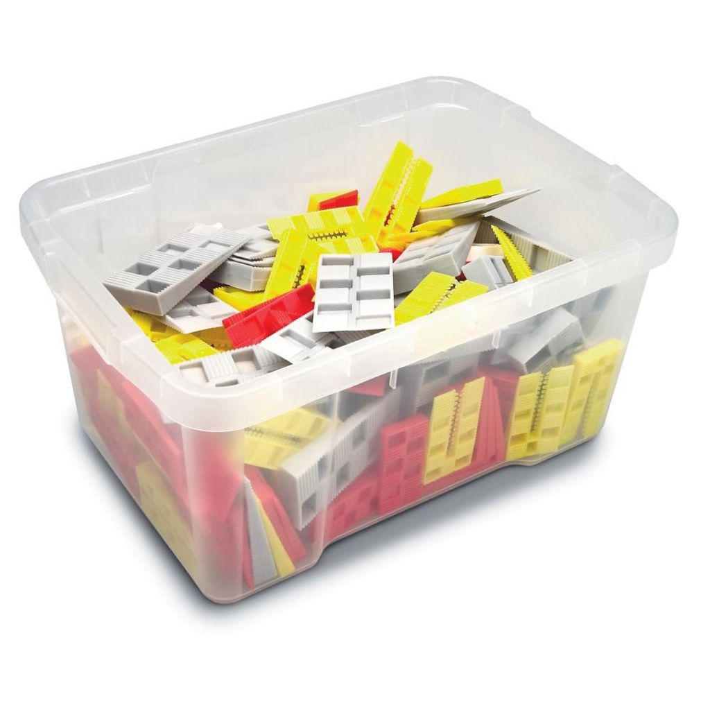 Mixlåda som innehåller 240 st mixade plastkilar.