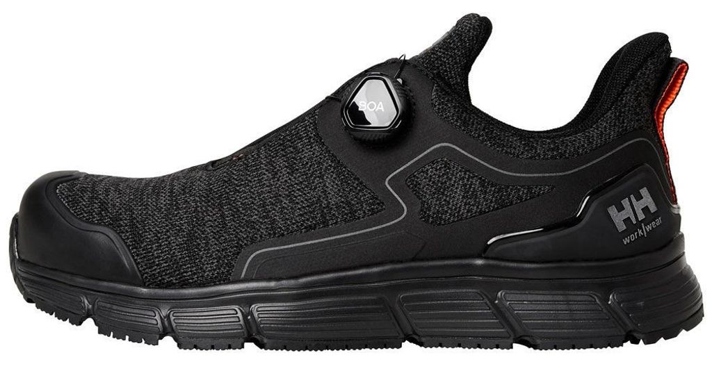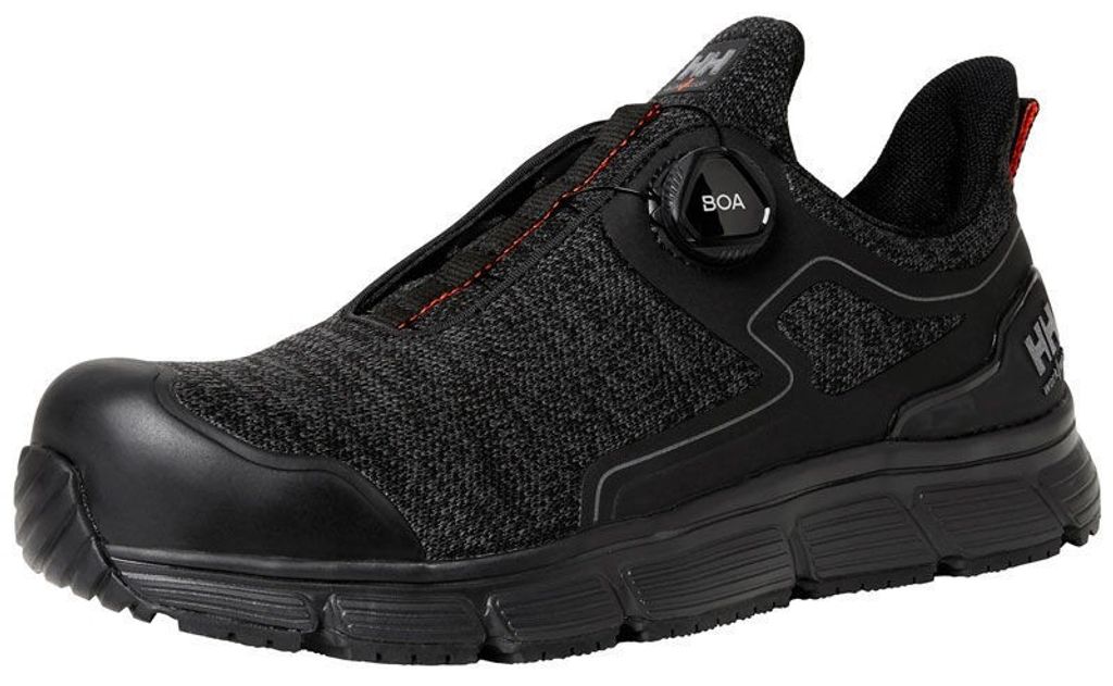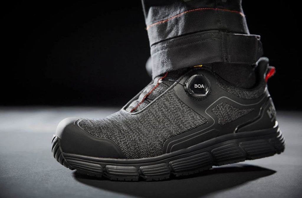 BOA® Fit System erbjuder en snabb och exakt passform. Skon har också fuktavledande och ventilerande air mesh-foder, tåhätta i komposit, metallfritt spiktrampskydd och en ventilerande PU-fotbädd. Yttersulan i HellyGrip-gummi är halk-, nötnings- och oljebeständig samt ger inte märken, vilket gör den robust för olika arbetsmiljöer.
