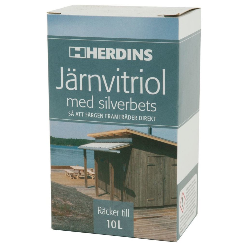 - Järnvitriol kan använas som behandling på hyvlat terrassvirke av t.ex. lärk före behandling med Herdins Grå Tjärolja för att ge en djupare och jämnare kulör.