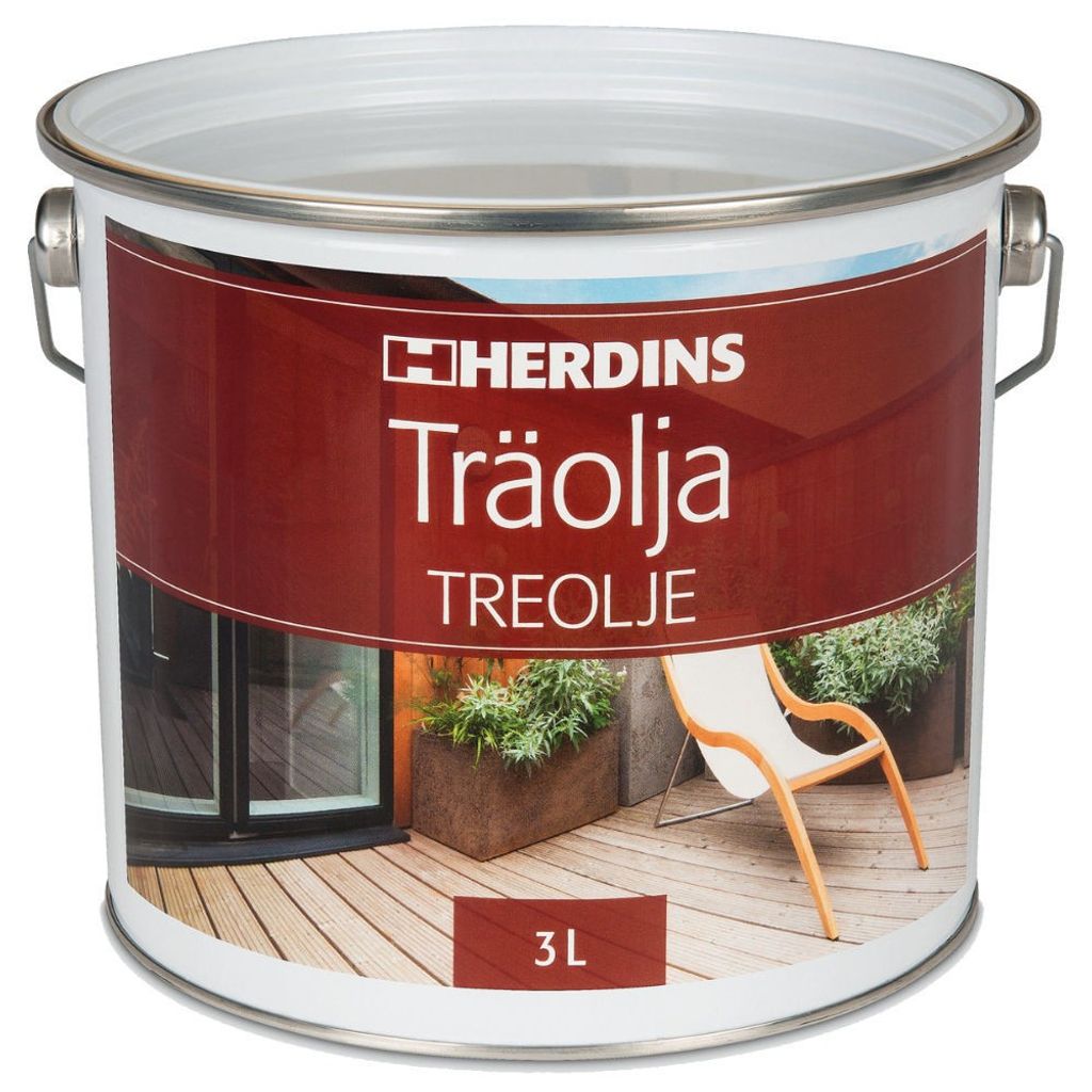 Herdins Träolja 3L är en högkvalitativ träolja för tryckimpregnerat och obehandlat trä utomhus. Den skyddar mot uttorkning, motverkar torrsprickor och gör träytan vattenavvisande. Träoljan framhäver och bevarar träets naturliga färgton och utseende. Med en torrhalt på 32% tränger den effektivt in i träet för bästa skydd.