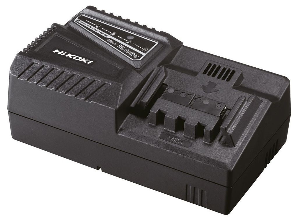 HiKOKI batteriladdare UC18YFSL är en kombiladdare som är anpassad för HiKOKIs Li-ion batterier på 14,4 eller 18V med Slide-fäste.