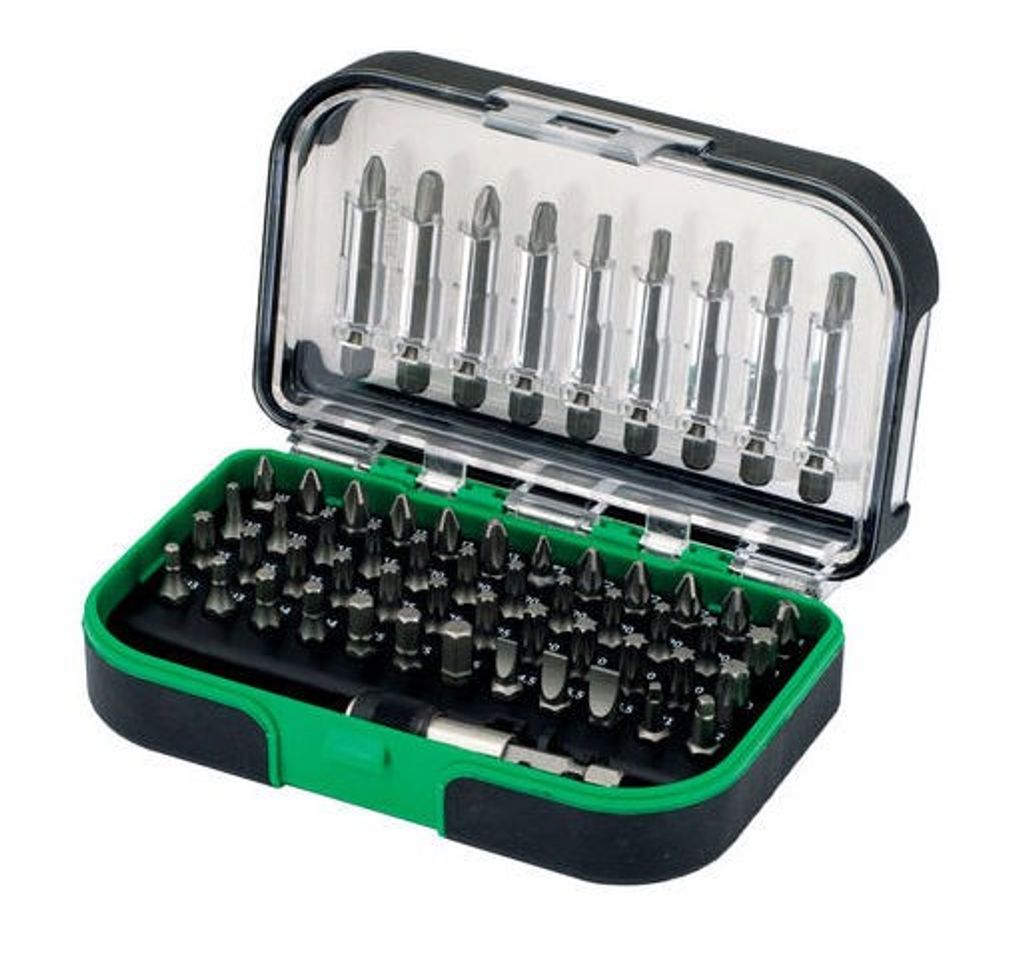 HiKOKI 58-delars bitssats förvarat i en robust förvaringsask med transparent lock. Innehåller både 25 mm samt 50 mm långa bits.