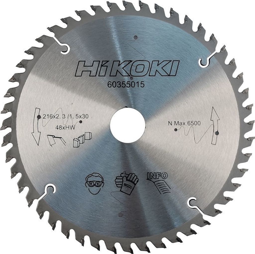 HiKOKI 216mm sågklinga med HM-tänder. Utrustad med laserskurna expansionsslitsar för bättre hållbarhet och även laserspår för att minska ljud och vibrationer.