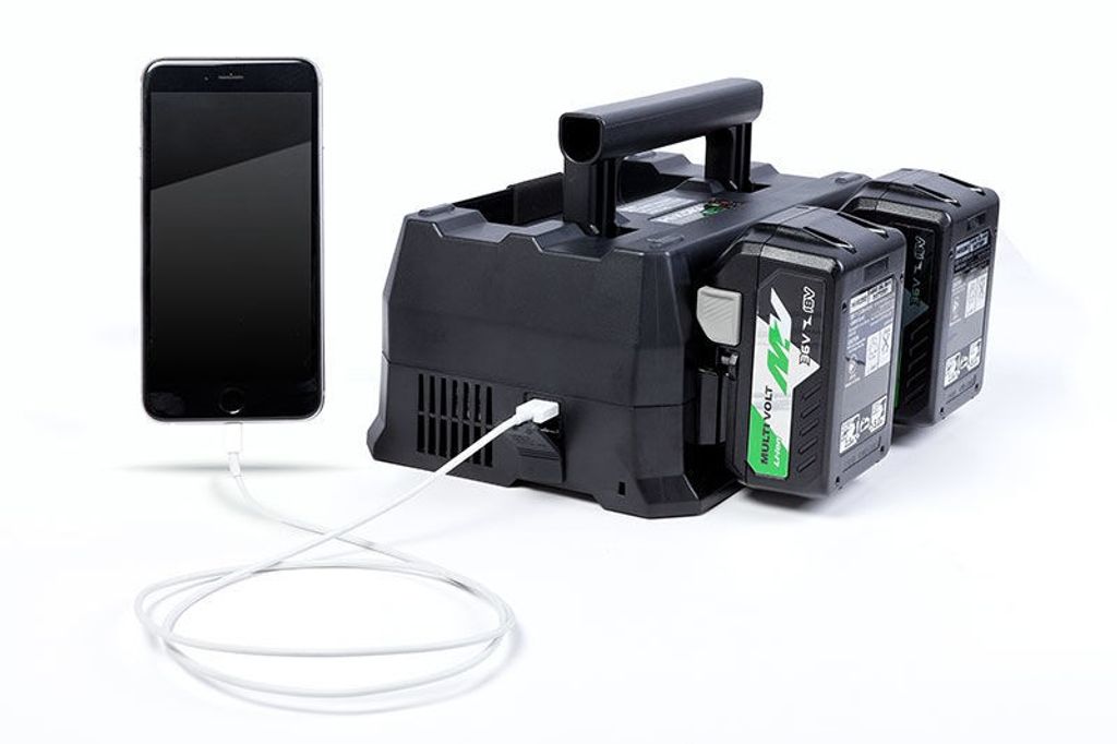 Perfekt som central laddstation i byggbod, verkstad och servicebil. Håller flera batterier redo för skruvdragare, kapar, spikar och andra HiKOKI maskiner. Ladda samtidigt som du driver mobil och surfplatta via USB och använd eluttaget för hjälputrustning. En pålitlig lösning för team och ensaminstallatörer som kräver kontinuerlig drift.