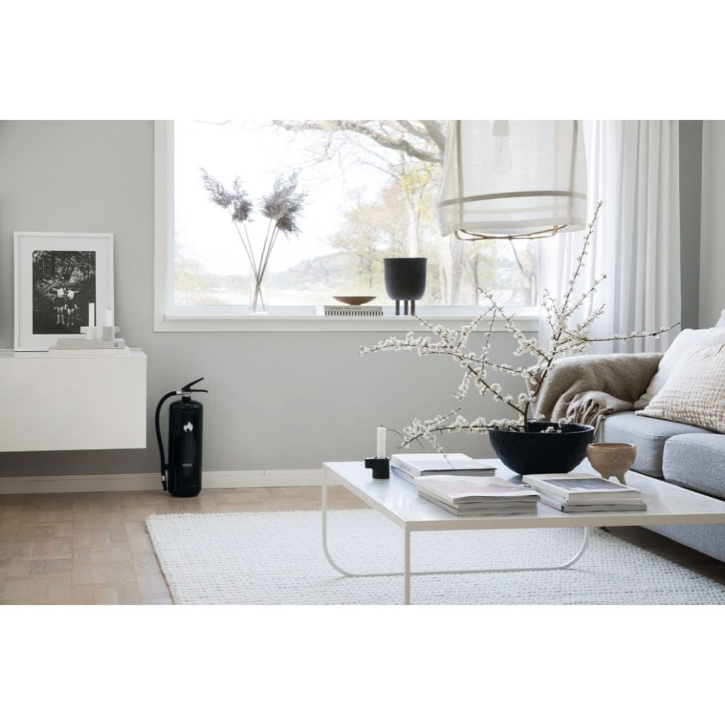 Den skandinaviska inredningsstilen är känd och hyllas världen över för sin avskalade, ljusa och naturnära framtoning. Den svarta brandsläckaren smälter in i hemmet och blir en del av inredningen, så den kan placeras på platser där den är lättillgänglig om olyckan skulle vara framme.