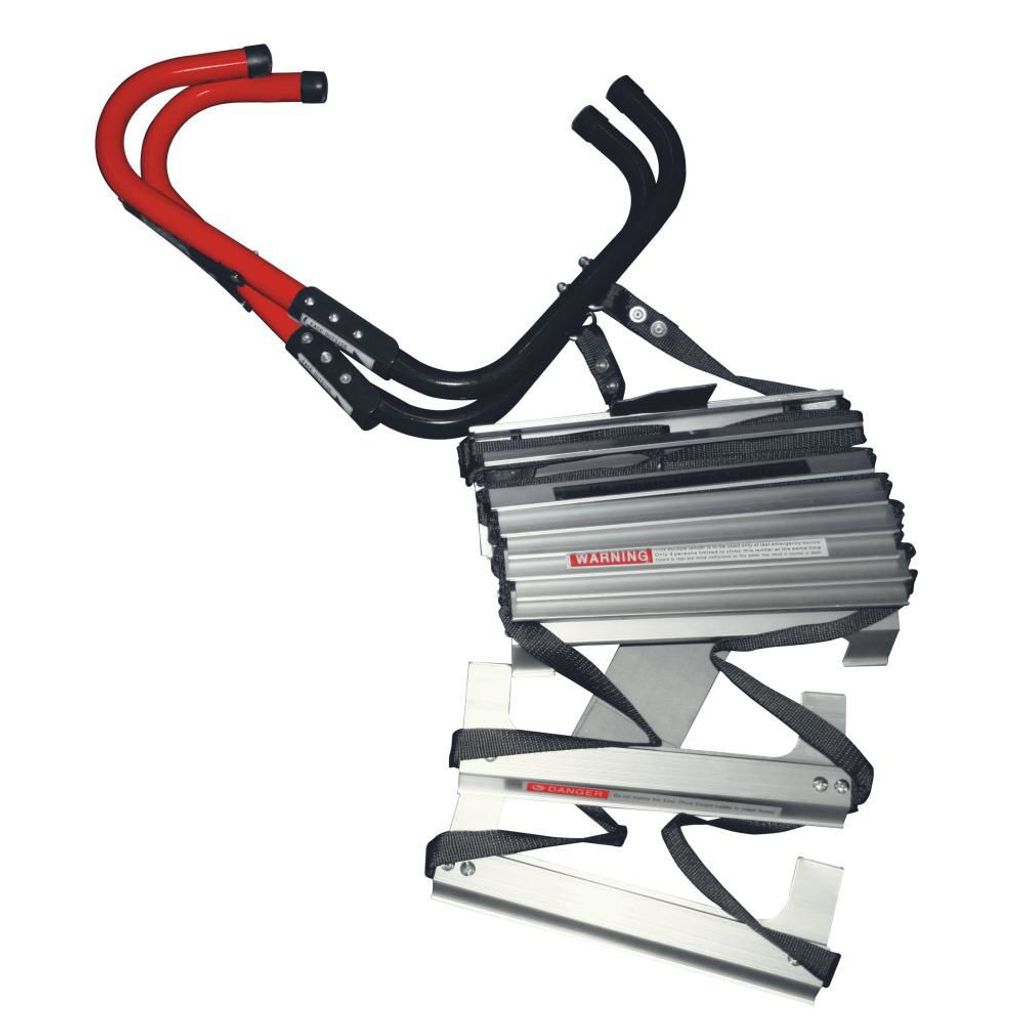 - Housegard brandstege är försedd med kraftiga krokar som hängs över fönsterkarmen vid evakuering.