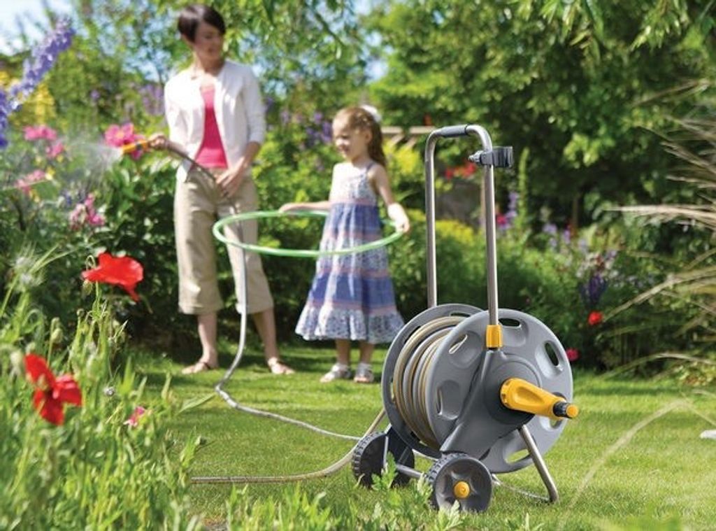 Hjulförsedd slangvagn, med 20 m 12,5 mm Maxi Plus slang, inklusive kopplingar och munstycke.