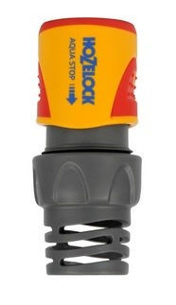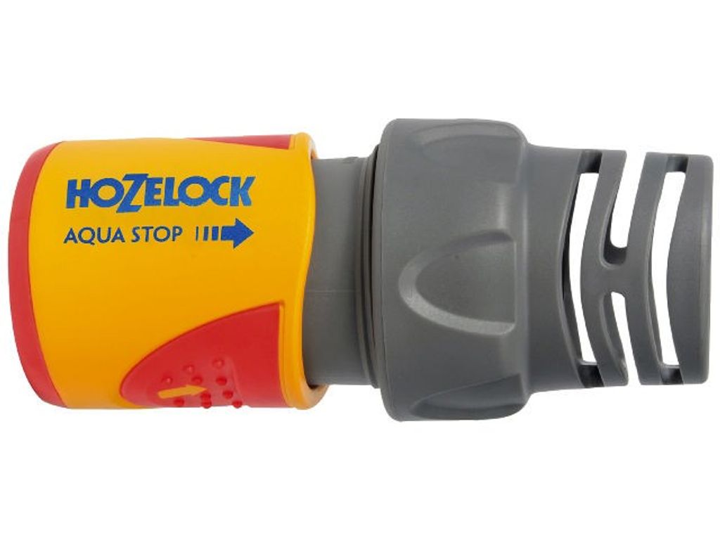 Hozelock AquaStop Stoppkoppling Plus för 15 mm och 19 mm (3/4") slang. Denna koppling passar bäst vid slangens pistolände. Ventilen stänger automatiskt av vattnet när tillbehöret kopplas bort.