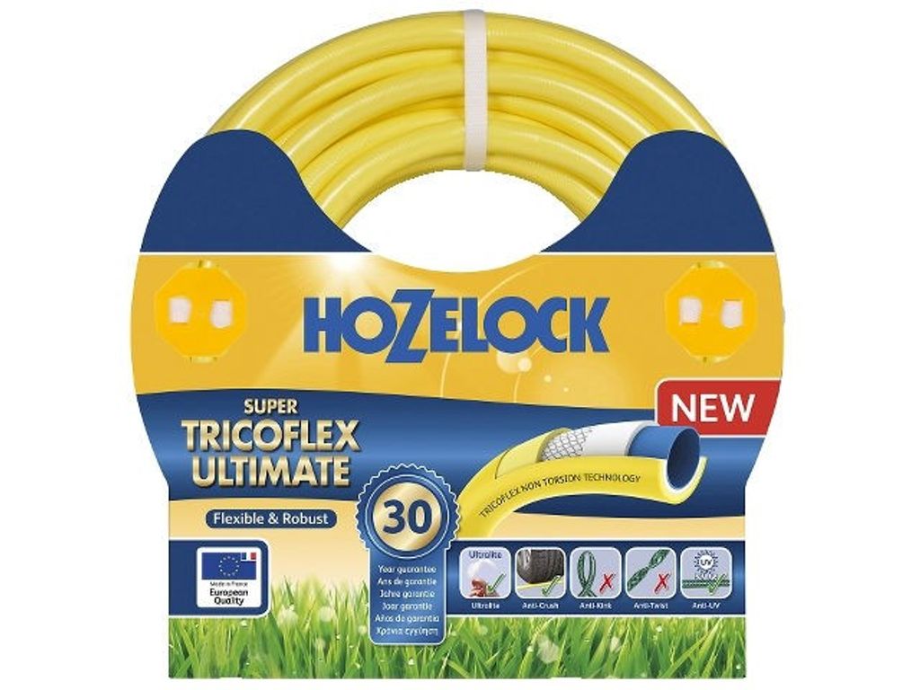 Hozelock Bevattningsslang Tricoflex Ultimate, Flexibel anti-kink slang. 5 lager med TNT™ anti-twist teknologi och ErgoRibs. Soft & Flex™ teknologi gör slangen stötabsorberande. Luftbubblor som absorberar de ansträngningar och påfrestningar som kan göra att slangen veckar sig. Risken för att slangen veckas minskar och livslängden ökar. Frost- och UV beständig. Klarar temperaturer +60 grader till -20 grader.