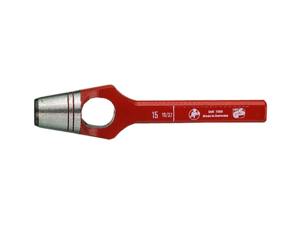 För läder m.m. Med bygel. Blankpolerat, koniskt skärhuvud. Rektangulärt skaft. Lackerade.