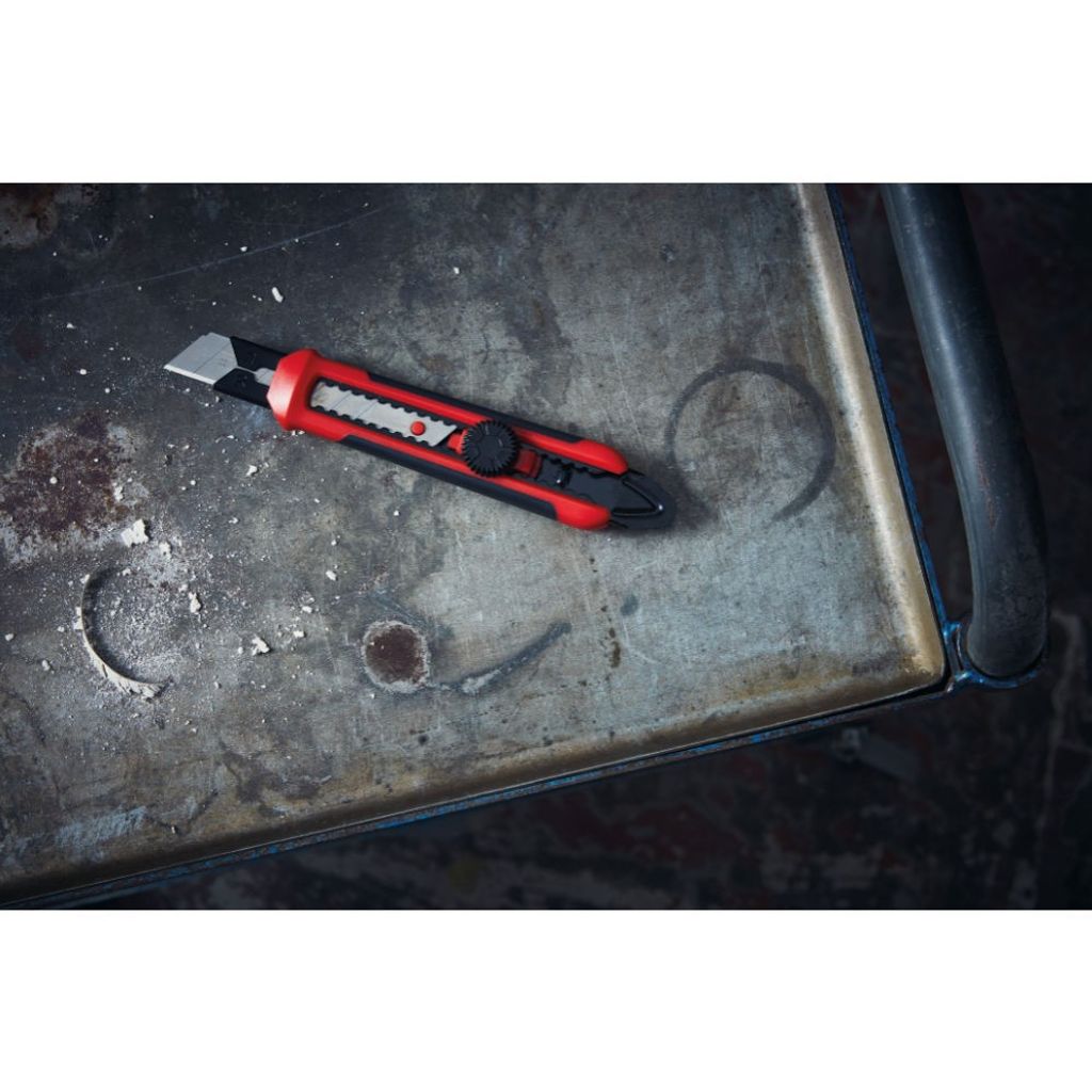 - Kniven har plats för ett magasin med 3 extrablad och är gjord av hållbar PC-plast (polykarbonat) med stålkärna för extra stabilitet