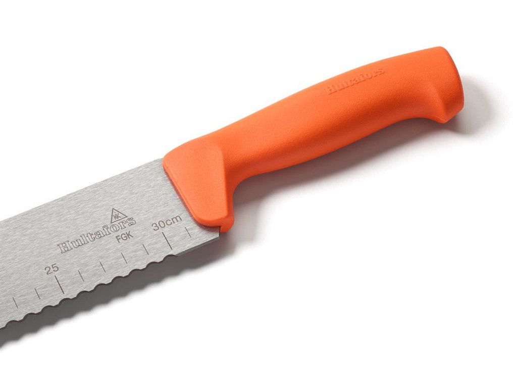 Hultafors FGK Mineralullskniv har en ergonomiskt utformad handtag som ger ett stadigt grepp och möjliggör enkel och effektiv skärning. Handtaget är gjort av glasfiberförstärkt polyamid, vilket gör det både lätt och hållbart. Klingan är gjord av högkvalitativt japanskt knivstål och har en unik slipning som gör att den skär lätt genom både tjock och tunn mineralull.