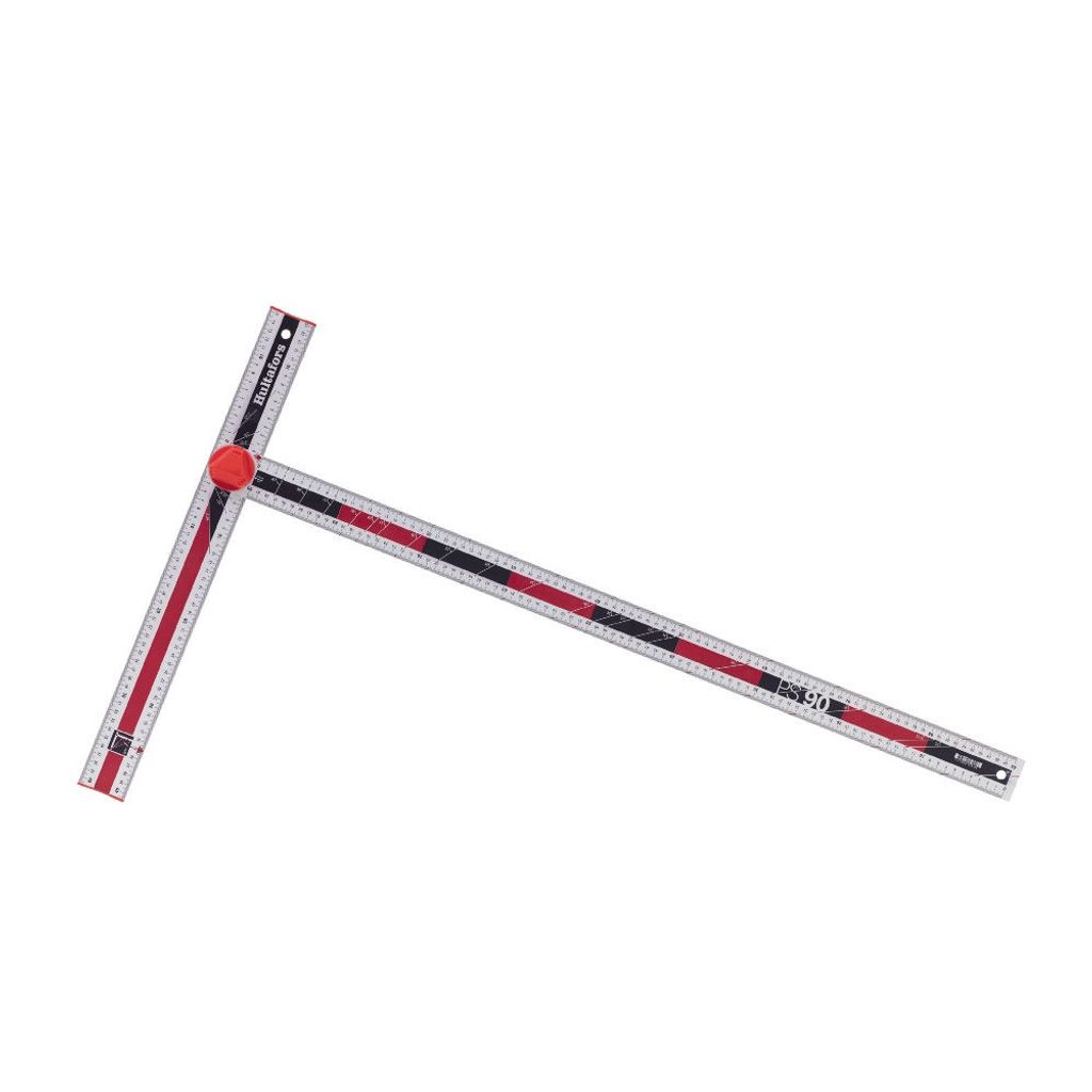 Ställbar gipsvinkel med millimeter och gradgradering som kan ställas i fyra fasta lägen. Anslag och blad kan vikas ihop, vilket gör den enkel att förvara och transportera.