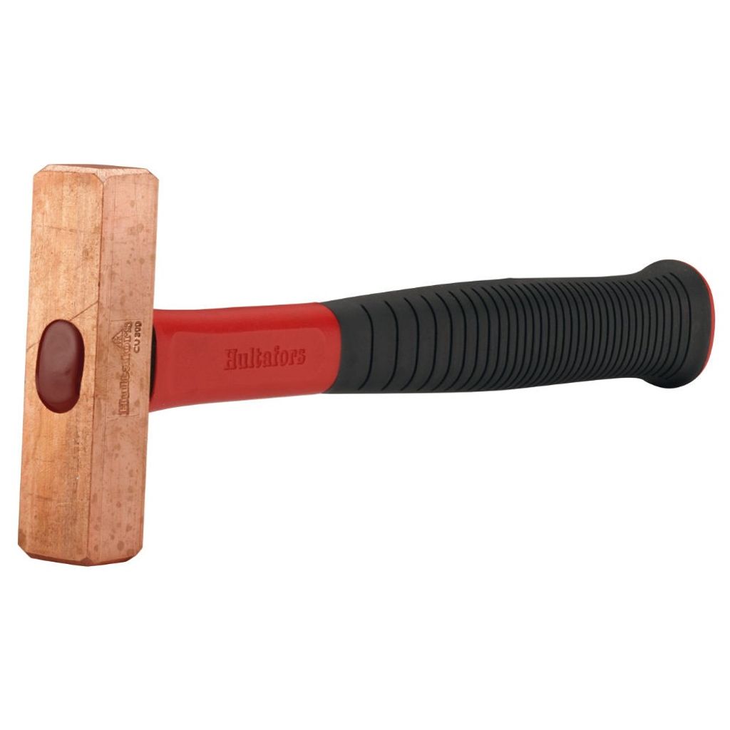 Hammare med skalle av koppar och skaft i glasfiber. Kopparhammare är gnistfria och skonsamma mot arbetsstycket.