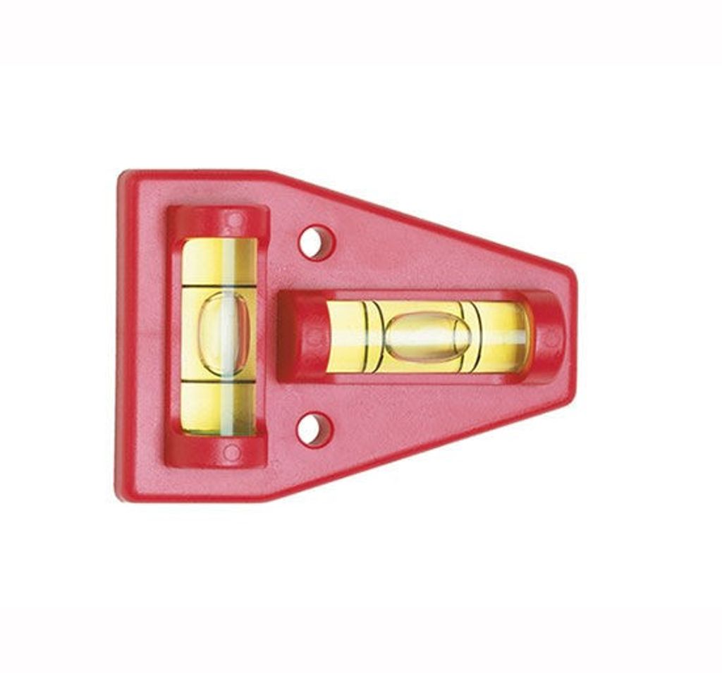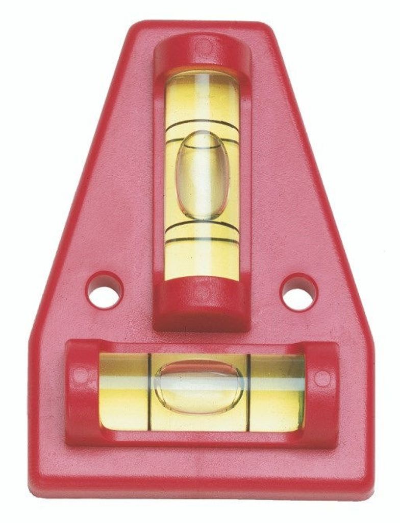 Vattenpass i röd slagtålig plast med två vinkelräta libeller. Passar om du ska kontrollera lutningen på två horisontella ytor samtidigt.