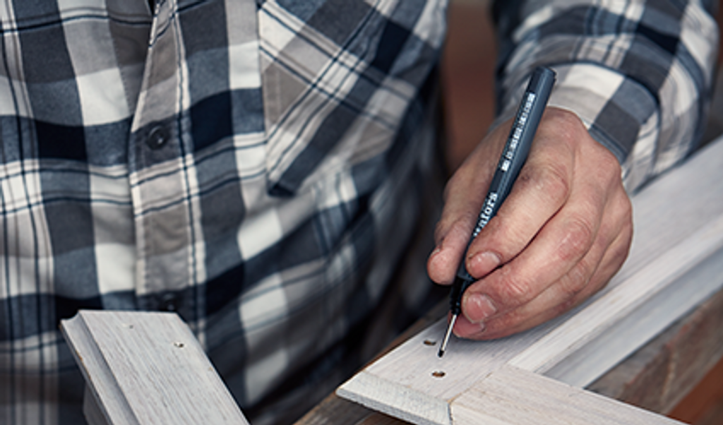 Tuschpenna för märkning där det är svårt att komma åt och i smala hål. Hultafors Djuphålsmärkare är anpassad för märkning i trånga utrymmen och i smala hål. Finns i röd och svart permanent tusch för att kunna användas på de flesta material och underlag.