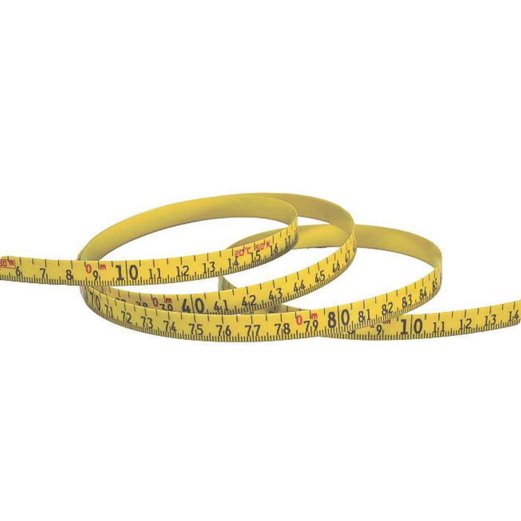 Stålmätband. Gult med mantel av polyamid. För montering i kapbänkar.