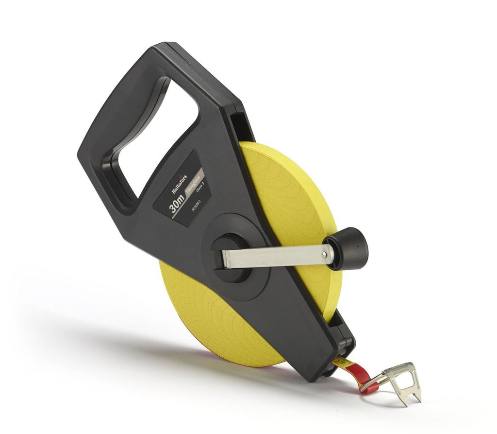 Hultafors PC 30m är ett gult glasfiberband, bandbredd 13 mm, mycket flexibelt band med extra tjockt lager av plast som skyddar mot slitage. Slagtålig ram av ABS-plast. Bandbörjan typ C.