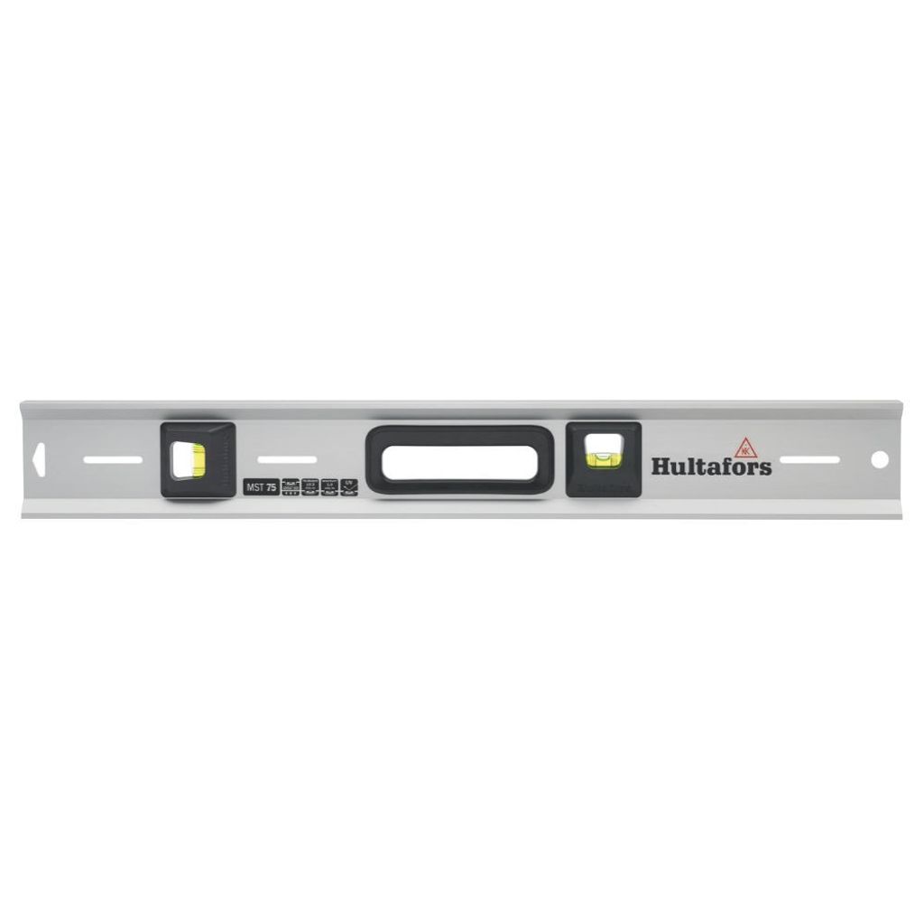 Hultafors MST75 är en rätstege av strängsprutad aluminiumprofil. Handgrepp med mjuka plastkanter. Tre justerfria libeller - två lod och en våg - av okrossbart plexiglas. Måttnoggrannhet 1 delstreck = 1 mm/m.