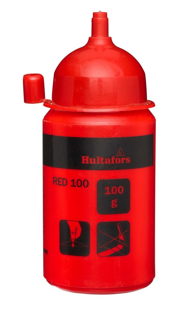 Hultafors röd snörslåkrita i lite mindre 100 grams förpackning. En riktigt bra allroundkrita till din snörslå
