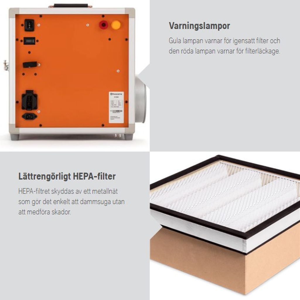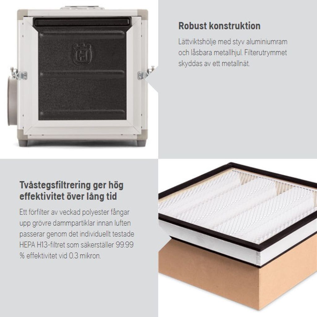 Husqvarna A1000 Luftrenare 1000m3/h, förfilter+H13
