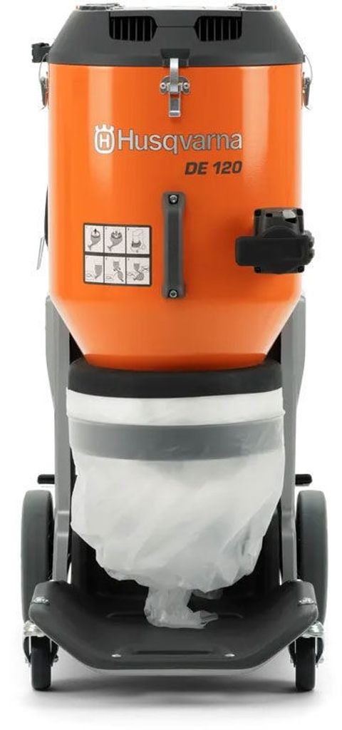 Husqvarna DE 120 är en kraftfull och tålig H-klassad stoftavskiljare som är lätt att transportera och underhålla. Den har avancerat vattenskydd och integrerad uppkoppling för att hålla koll på användningsdata. Dessutom har den ett förbättrat Longopac®-kopplingssystem.