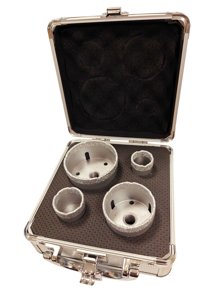 Borrarna klarar de mest krävande materialen som granit, klinker, keramik, marmor och stengods med hög precision. Den medföljande metallväskan skyddar verktygen effektivt under transport och ger en hållbar och organiserad förvaringslösning som tål tuffa miljöer på arbetsplatsen.