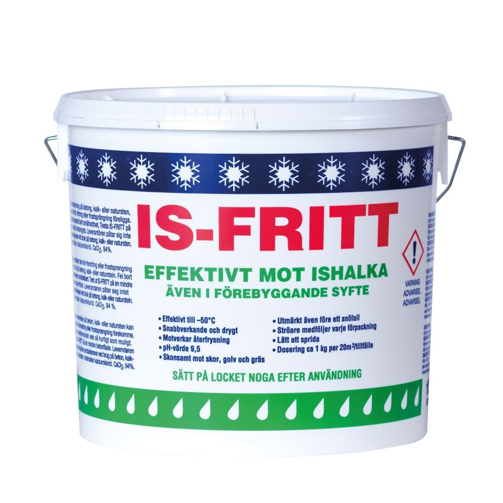 IS-FRITT är marknadens mest idealiska medel mot ishalka, Effektivt till -50% och väldigt snabbverkande, Inga tillsatser som kan skada djur och natur, utmärkt även före snöfall och mot återfrysning. Ströare medföljer varje förpackning. Lätt att sprida, blåser inte bort, miljövänligt pH-värde 9,5. Enkel hinkförpackning med återförslutning.