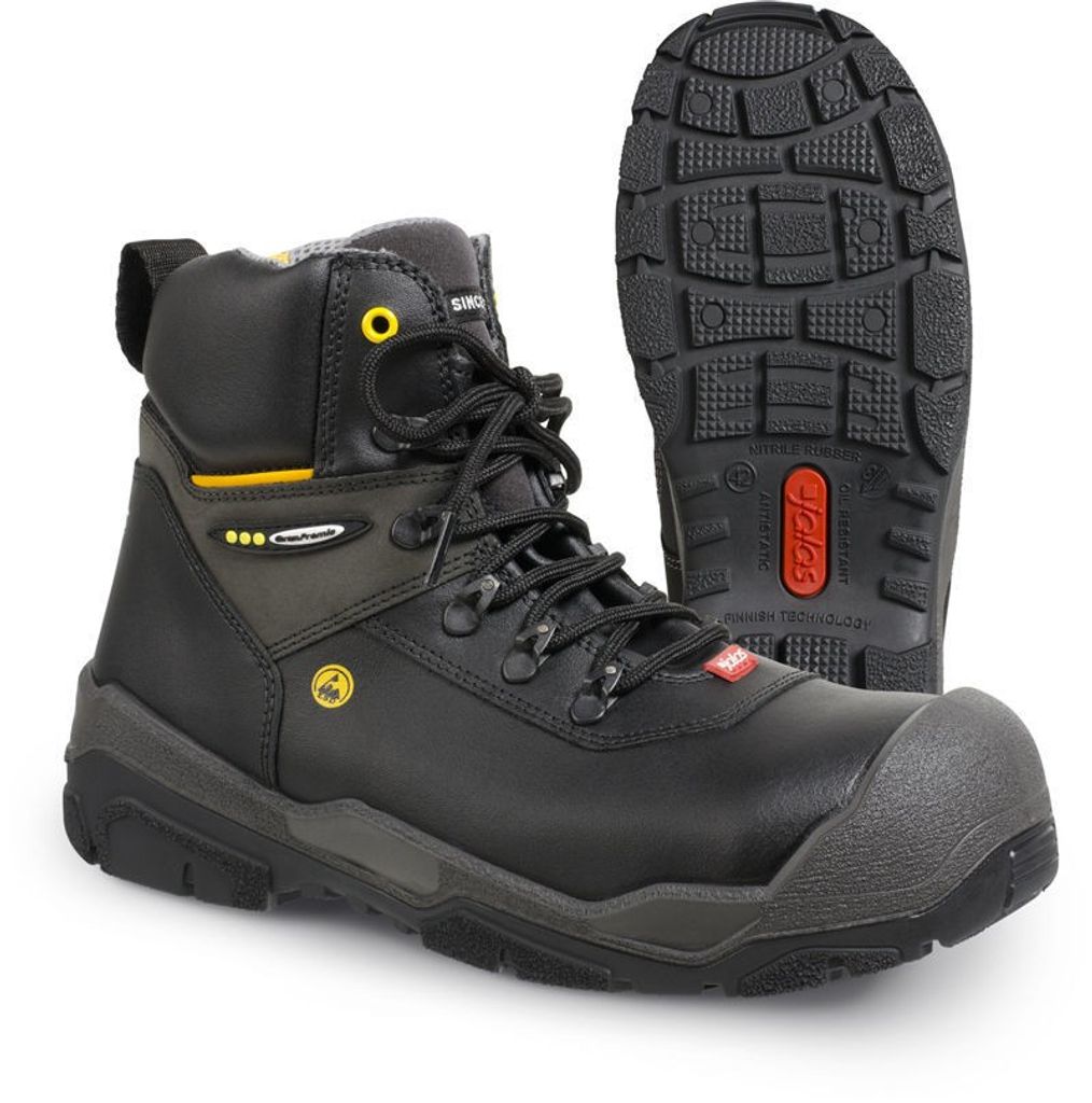 Jalas 1828 Jupiter är en rejäl, bekväm och medelhög skyddskänga med högsta skyddsnivå (S3) för de tuffaste utomhusmiljöerna. Ovandel i PU-belagt spaltläder skyddar fötterna och är både vattenavvisande och antistatisk.