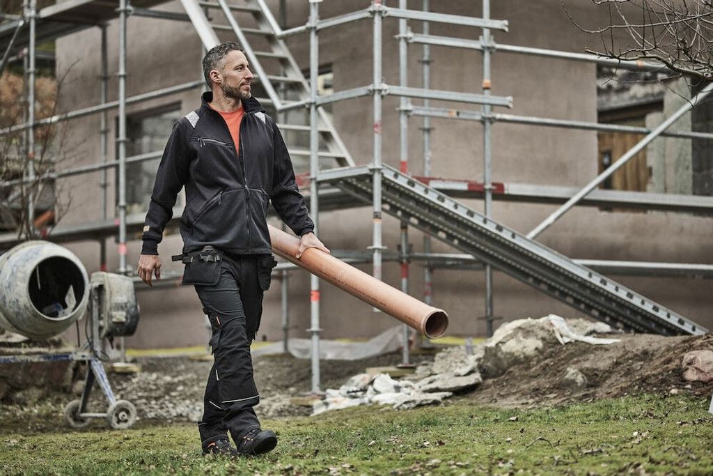 Byxorna är utrustade med rymliga hölsterfickor med extrafack och förstärkt insida, vilket ger praktisk förvaring för verktyg och andra nödvändigheter. För extra bekvämlighet kan fickorna stoppas ned i framfickorna. Ett silikonband i byxlinningen säkerställer att byxan håller sig på plats, medan en grenkil med förstärkt stretch Cordura® ger extra styrka och hållbarhet.